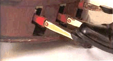 provistos de tornillos ajustables entre los cuales pasa la cuerda. Cuando un