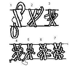 5. Secuencia del nudo de cochino para entrastar, con llegar al paso 5