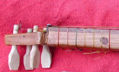 En México es tradicional que algunos instrumentos se entrasten atando cuerdas al mástil , el ejemplo más conocido es la vihuela de los mariachis (de caja abombada), otros ejemplos son el laud lacandón ( de caja de bule o calabaza), y la jarana huichol y cora (de caja plana de una pulgada o menos de grosor). Los amarres también se utilizan en la guitarra de mejorana de Panamá, entre otros ejemplos. ![]() Figura 1. Entrastado por amarres en un instrumento brasileño. Antiguamente se usaban cuerdas de tripa o fibras vegetales duras para hacer los entrastados, en la actualidad se emplea el sedal de pescar de 0.6 a 0.7 mm para hacer las ataduras (Por ello se usará en los ejemplos). ![]() Figura 2. Jarana entrastada con amarres de sedal de pescar El método usado para hacer los amarres consiste de utilizar nudos que sean constrictores y se cierren, de manera que al soltarlos no se aflojen. Lógicamente, la ubicación de estos debe hacerse de manera que se localicen detrás del diapasón y no sobre éste, en ocaciones se ponen a un lado. De acuerdo con lo que yo he visto, el recurso más usado es el "nudo de caballo", llamado así porque se emplea para atar a las bestias para que pasten, de manera que no se estrangulen cuando tiren de la cuerda. Su elaboración es sencilla consiste en un nudo corredizo al que se le introduce una punta de la cuerda, para formar una "gaza", al tensar el conjunto el nudo se "cierra". ![]() Figura 3. Los dos estados del nudo de caballo En el entrastado de un instrumento, su aplicación consiste en dar una o mas vueltas alrededor del mástil, a la altura del sitio requerido, se hace el nudo y después se aprieta la cuerda cuidando que no se cierre la parte corrediza, una vez lograda la tensión necesaria se procede a cerrar el nudo soltando su base. Para evitar que el extremo del nudo corredizo de salga conviene hacer un nudo simple como se ve en la ilustración. Figura