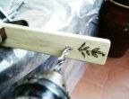 Hacemos la clavija con el cuadradillo de madera de haya, a base de