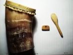 Mientras se seca el mástil, ponemos la piel en el cuerno. Para