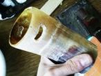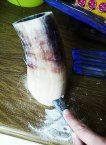Cortamos el cuerno hasta que tenga unos 15 cm de longitud y lo raspamos